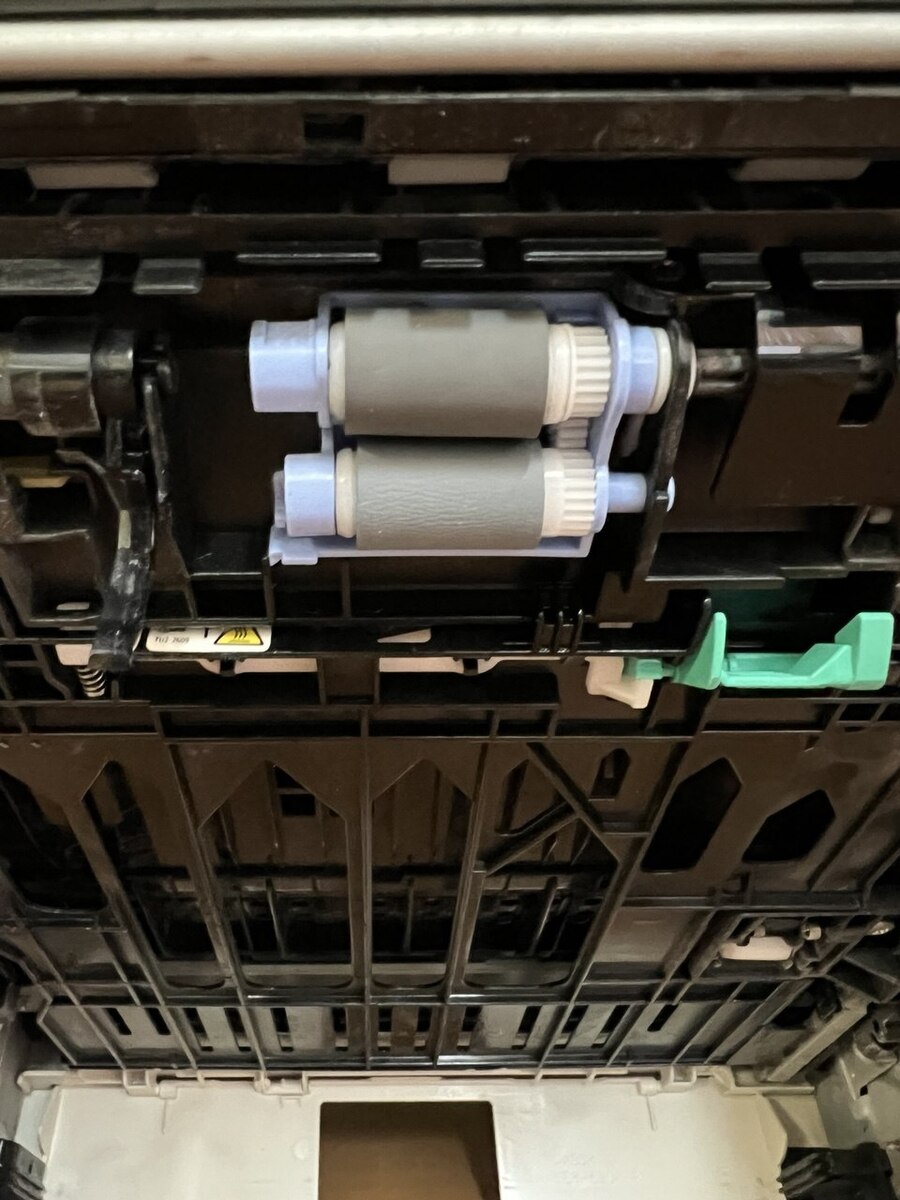 Ролики под днищем- RM2-5452 - менялись давно, но сейчас я их протер Platenclene-ом, ничего не поменялось, так же захватывает по несколько листов, с периодичностью раз в 100 листов примерно.