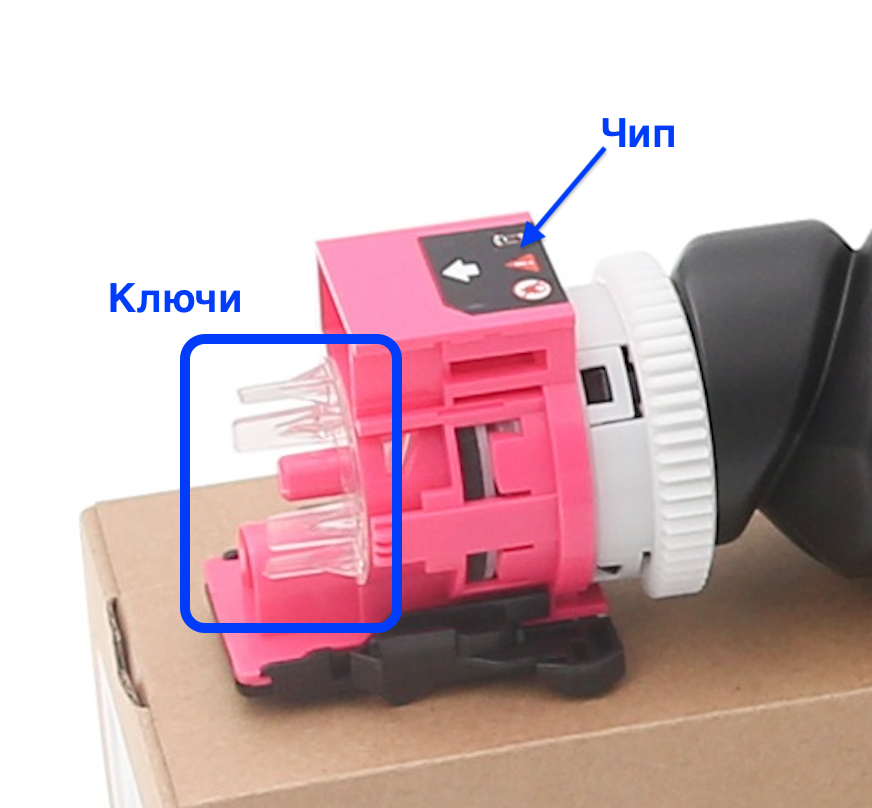 - Обломить на картридже "лишние" выступы пластиковых ключей, чтобы картридж "влез" в машину. Удалить с картриджа чип и наклеить вместо него чип старого картриджа.
