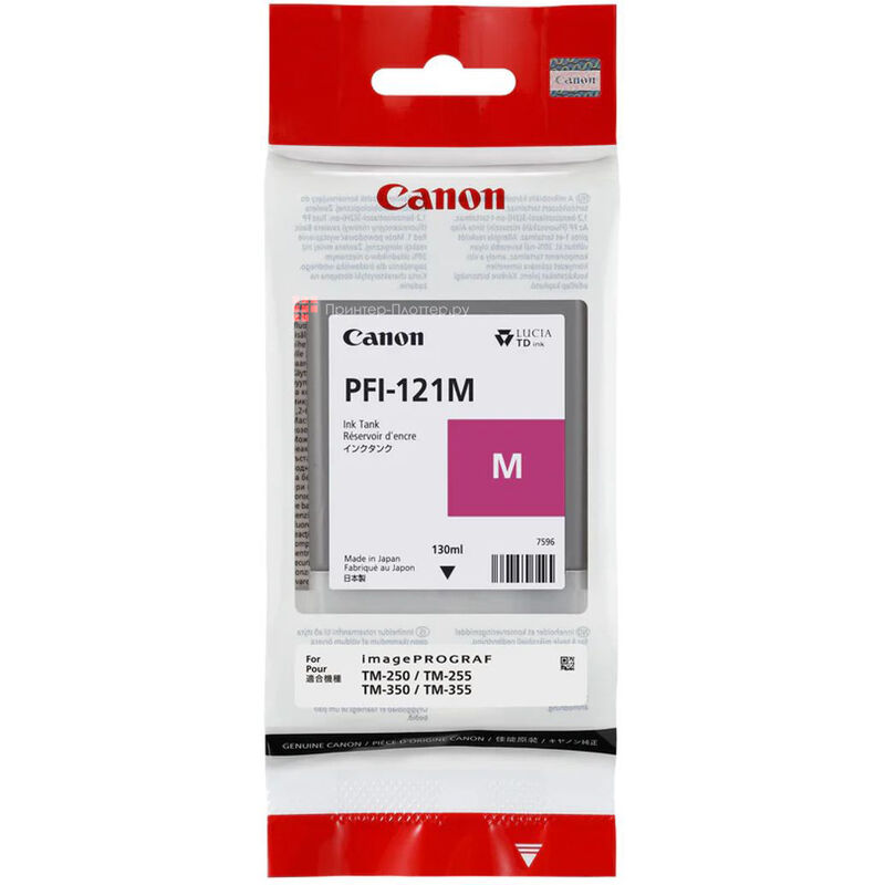 Пурпурный картридж струйный PFI-121M для Canon: imagePROGRAF TM-200, TM-205, TM-250, TM-255, TM-300, TM-305, TM-350, TM-355